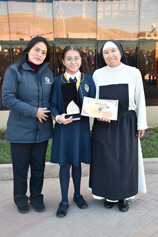 El pasado viernes 15 de noviembre de 2019, se desarrolló el V Concurso de Spelling Bee organizado por la Institución Educativa Privada Santa Catalina, en el cual nuestra Institución tuvo un gran desempeño en cada una de las categorías; demostrando en todo momento su nivel de preparación al afrontar cada una de las rondas del concurso. Fruto de ello obtuvimos medalla de plata en la categoría B y medallas de oro en las categorías C, D y E respectivamente. Felicitamos a todas las estudiantes que nos acompañaron en este concurso y a los docentes del área de ingles que estuvieron en todo el proceso de preparación y participación con las estudiantes.